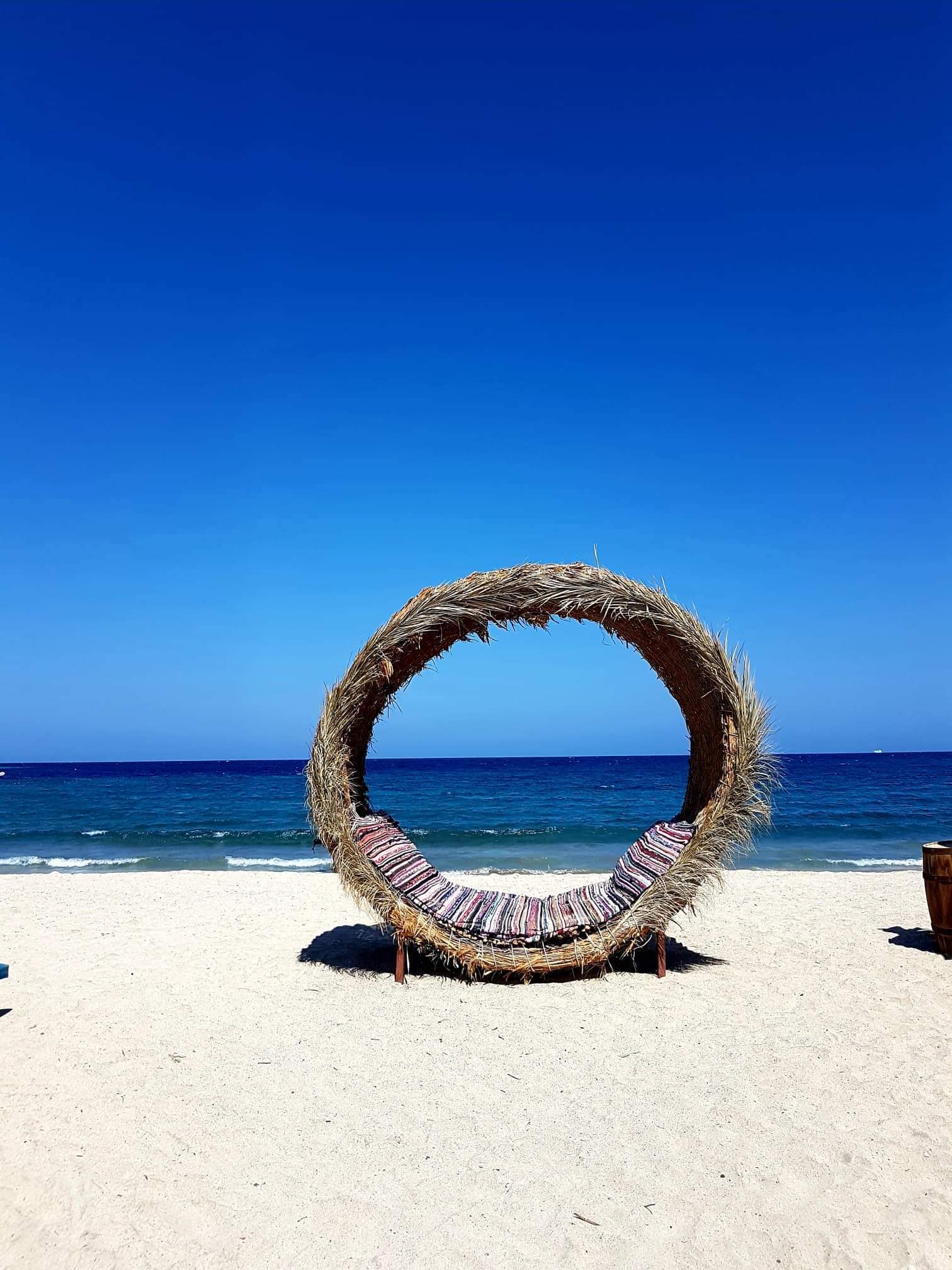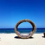 Na pláži si můžete odpočinout na lehátkách. Jakmile obsluha spatří, že jste si vybrali lehátko, okamžitě přinese matraci a můžete si lehnout pod velké slunečníky vytvořené tak, že imitují palmy.